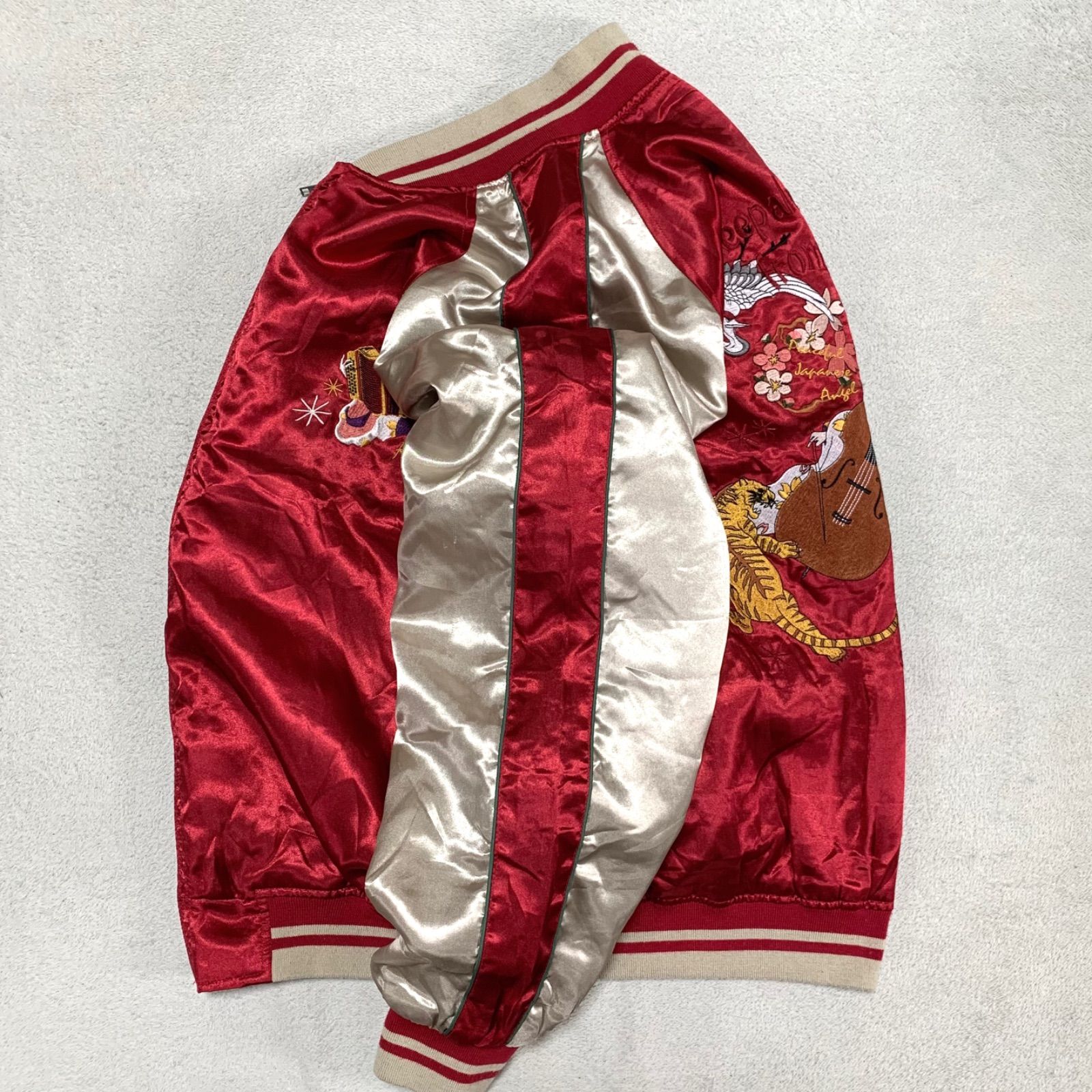 Japanese Traditional スカジャン スーベニアジャケット 両面刺繍 和柄 鶴 虎 兎 桜吹雪 舞妓 京都 3Lサイズ レッド 赤 ジャパニーズトラディショナル MEDICALDB_JP