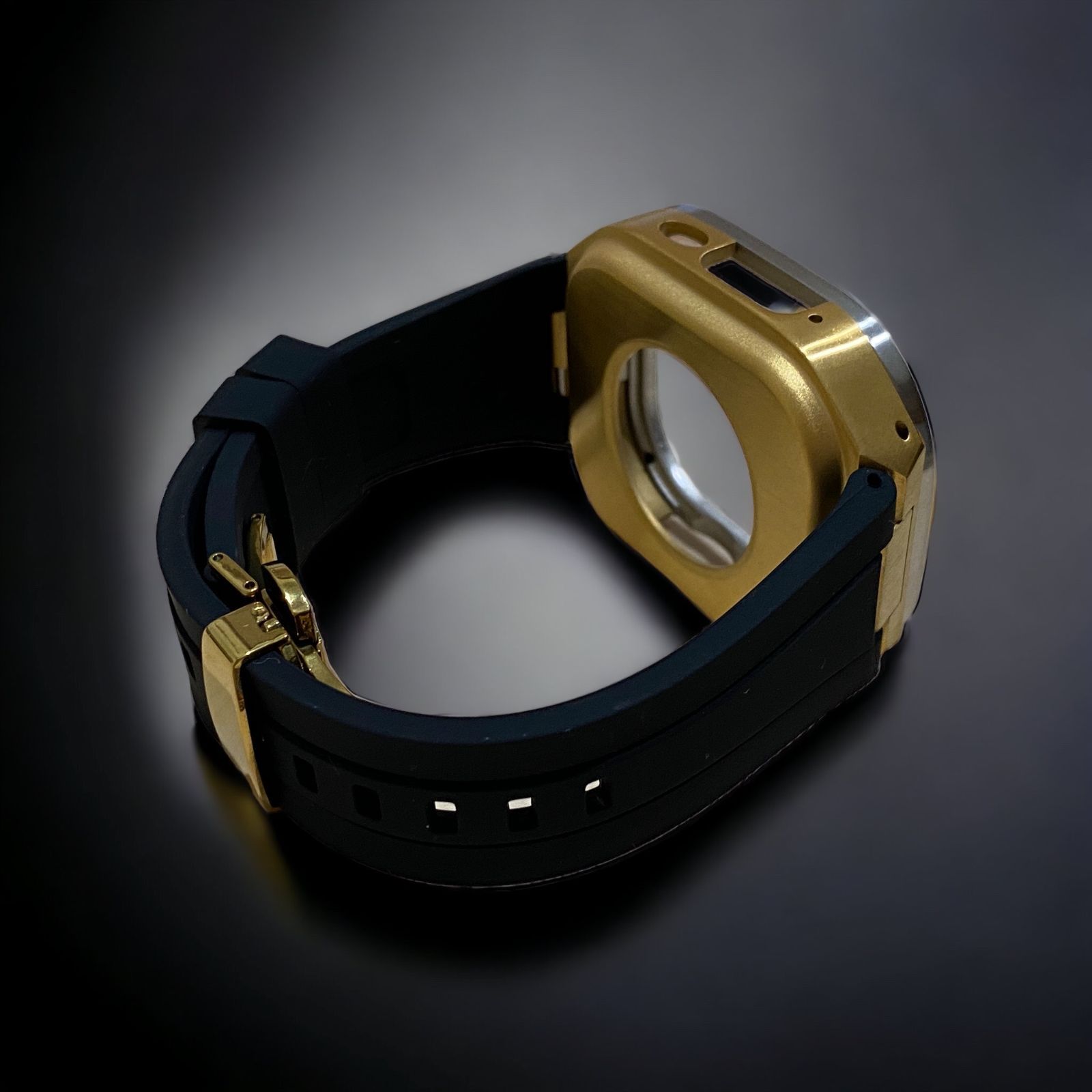 ブラック×シルバーゴールド 49mm apple watch ultraアップルウォッチラバーメタルカバーセット ウルトラ 49ミリ用 カスタム ultra1|2|3 MEDICALDB_JP