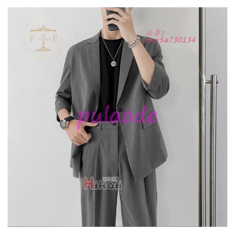 カジュアルスーツ メンズ 韓国 ファッション 七分袖 スーツ セットアップ ゆったり カジュアル 2ピース テーラード 春夏秋 ビジネス hax5a730134 MEDICALDB_JP
