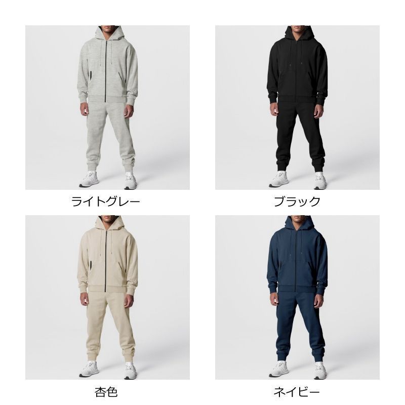 スウェット ♥ 上下セット ジャージ メンズ 裏起毛 運動着 セットアップ 秋 冬 防寒 暖かい 保温 無地 長袖 ジップパーカー ロング丈 スウェットパンツ ウエストゴム トップス ボトムス おしゃれ カジュアル シンプル yifengyud126 MEDICALDB_JP
