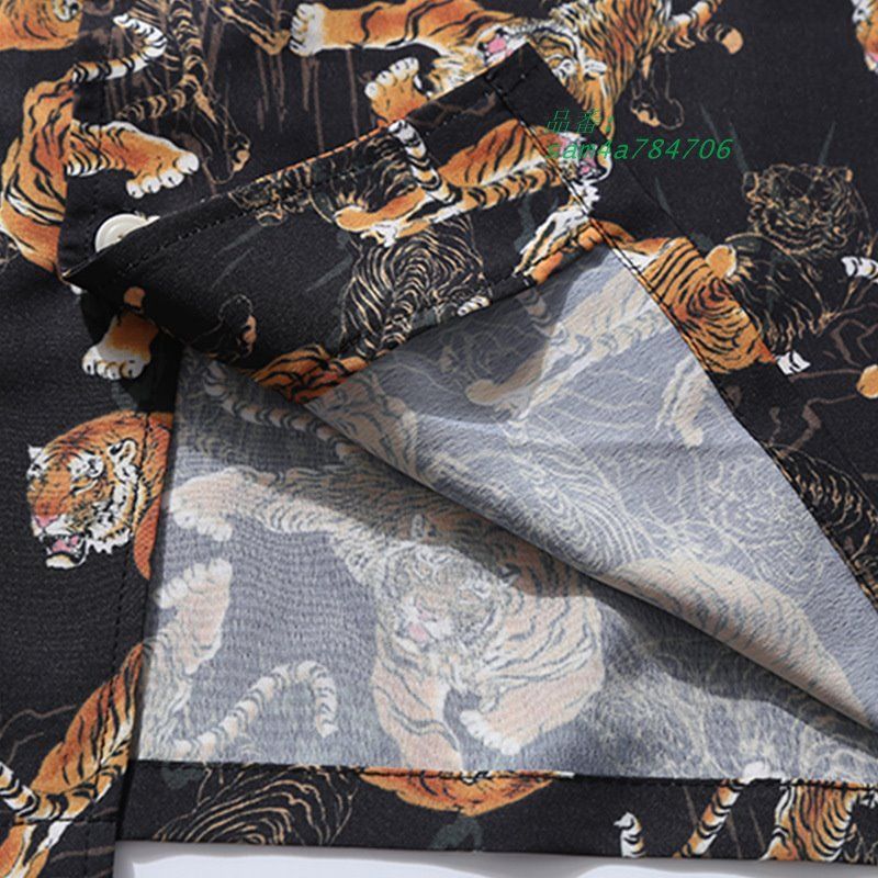 アロハシャツ アニマル タイガー 動物柄 カッコイイ Vネック サマー トップス メンズファッション お兄系 開襟シャツ 総柄 カジュアルシャツ am4a784706 MEDICALDB_JP