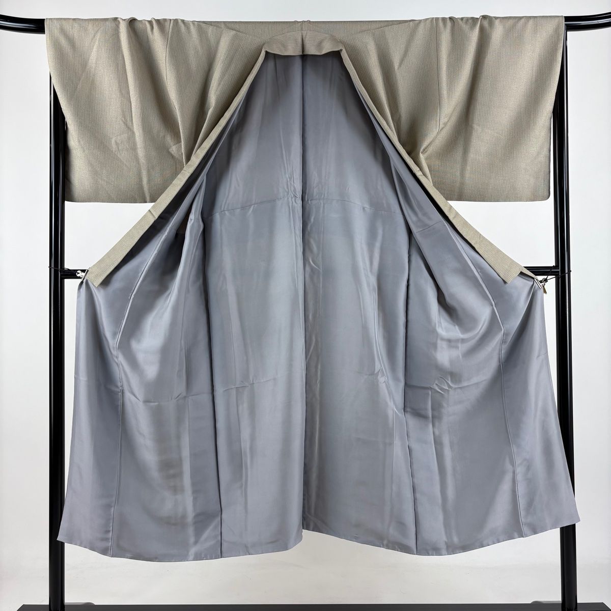 男着物 身丈141.5cm 裄丈69cm M 袷 縦縞 灰茶 正絹 秀品の検索結果