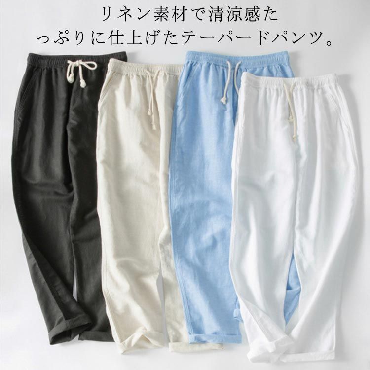 カジュアル テーパードパンツ イージーパンツ シンプル 涼しい メンズ リネン 綿麻 リラックス ストレートパンツ おしゃれ 春夏 麻パンツ ロングパンツ ボトムス 通気性 吸水 速乾 ロングパン sowa6584062 MEDICALDB_JP