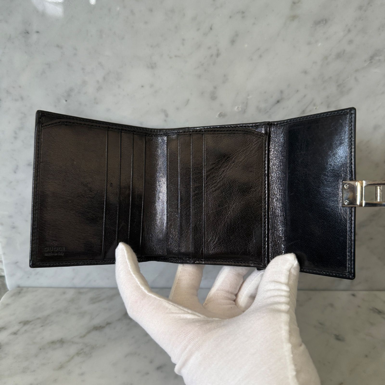 GUCCI グッチ 三つ折財布 ブラック シルバー 金具 本革 レザー コンパクトの検索結果