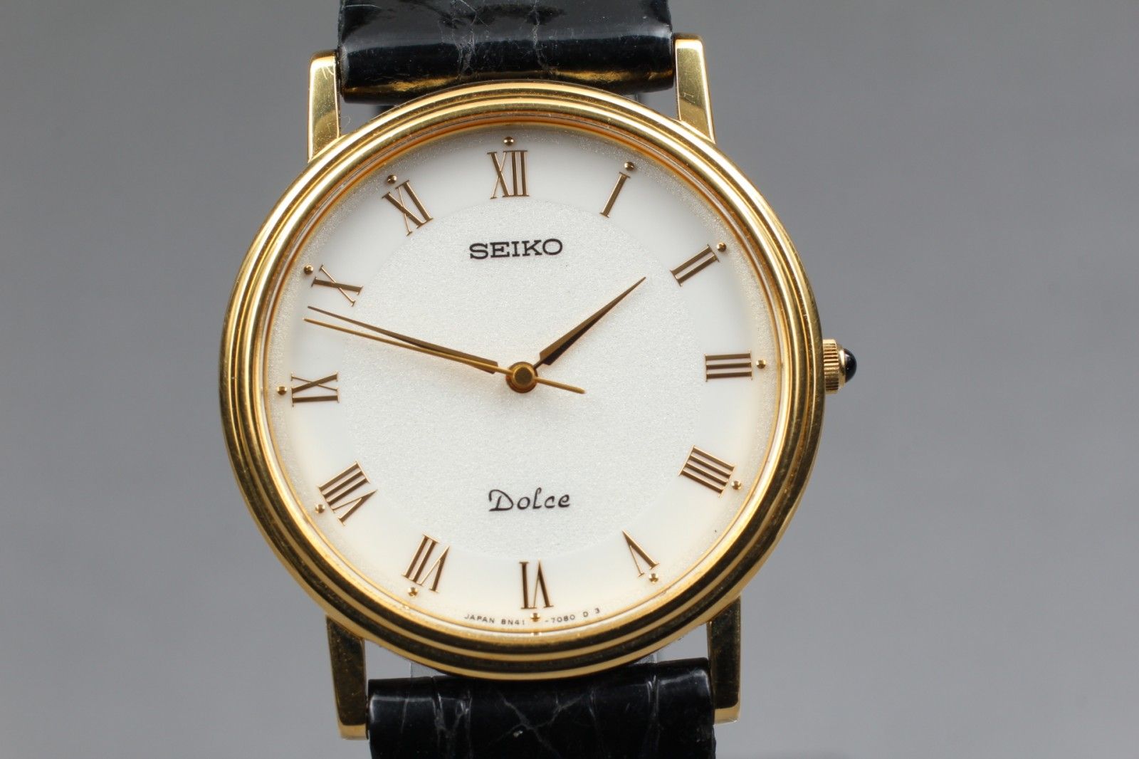 セイコー SEIKO ドルチェ Dolce 8N41-7030 メンズ 腕時計 ゴールド クオーツ 日本製 ブラックレザーベルト ローマンインデックス ヴィンテージの検索結果
