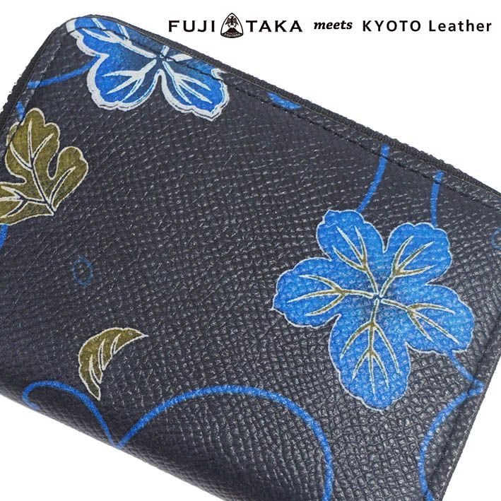 フジタカ FUJITAKA レザー コインケース KARAKUSA メンズ ブラック 日本製 定価24 200円 牛革 小銭入れ 京都レザー 柄B ギフト プレゼント 無料ラッピング MEDICALDB_JP
