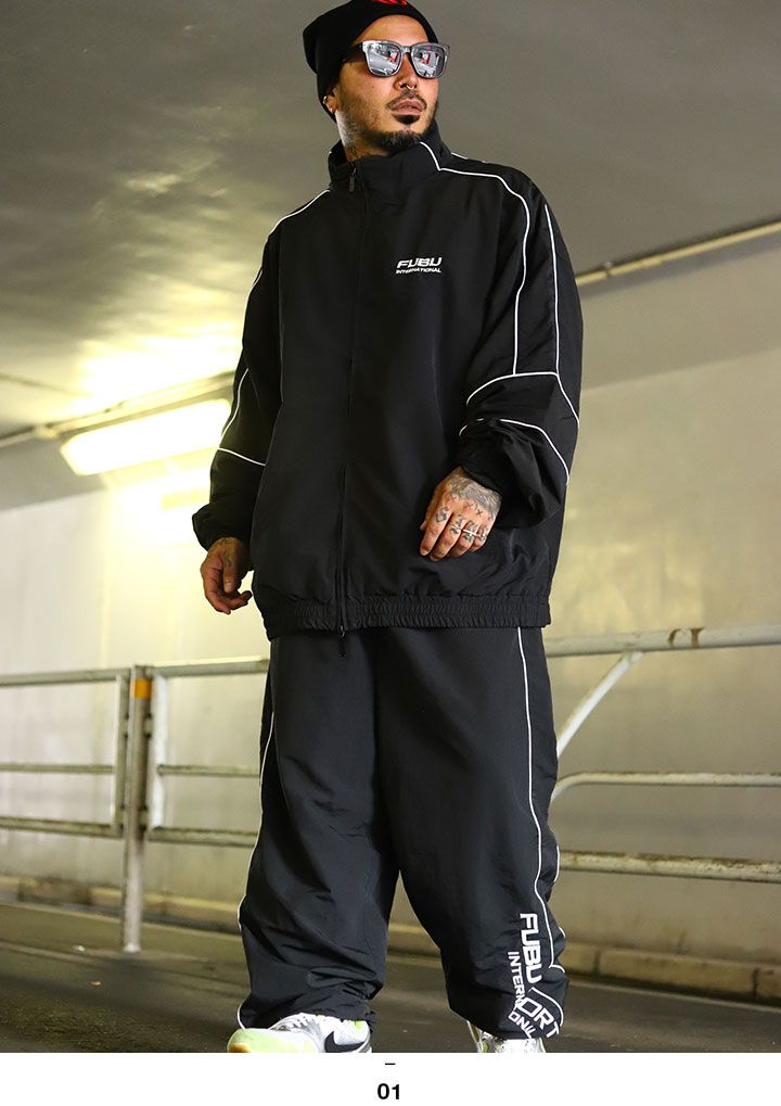 FUBU 上下セット 長袖 メンズ 春秋冬用 黒 大きいサイズ フブ セットアップ ブルゾン アウター ナイロン ナイロンパンツ ラインパンツ バイカラー ビッグシルエット b系 ヒップホップ ファッション スポーツ ハイ FAM-52308-52509 MEDICALDB_JP