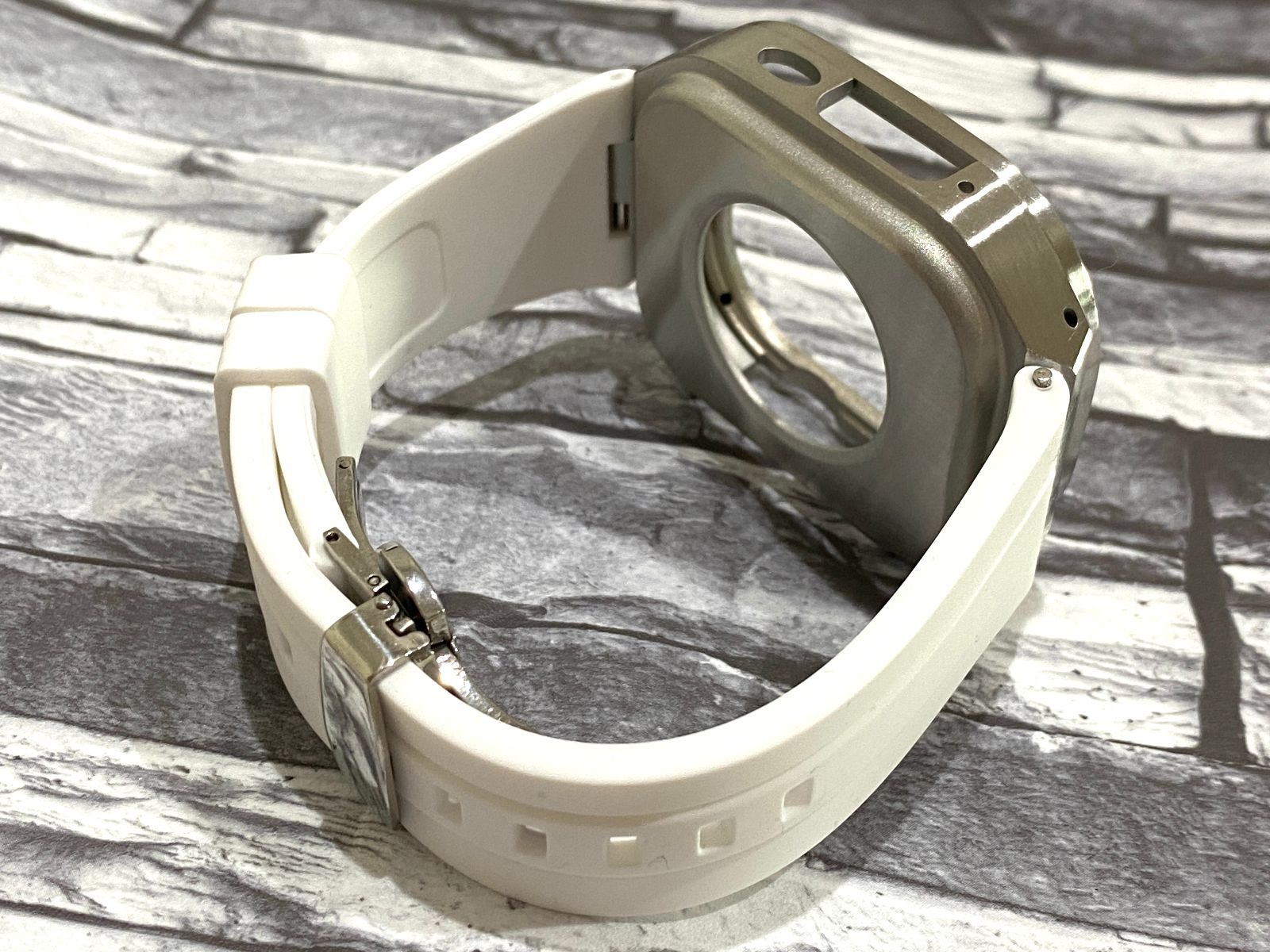 ホワイト×シルバーゴールド 49mm apple watch ultraアップルウォッチラバーメタルカバーセット ウルトラ 49ミリ用 カスタム ultra2