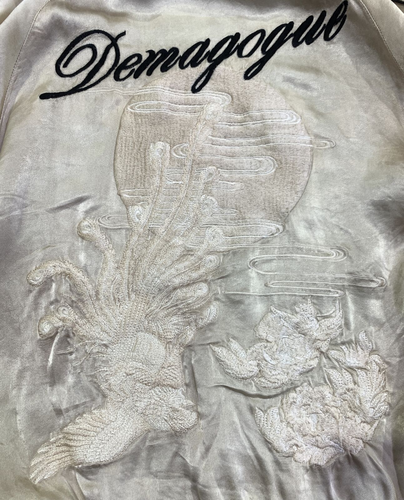 古着スカジャン フリーサイズ 刺繍 ドクロ ガイコツ ロック ギター スカル