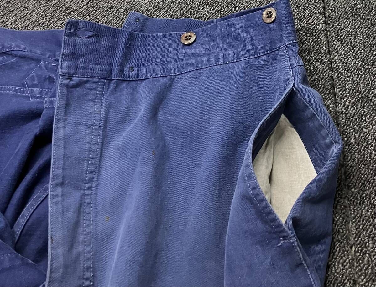 PTT ポストマンワークパンツ シンチバック 綿パン サイズ表記なし ボタン外れ有 ブルーの検索結果