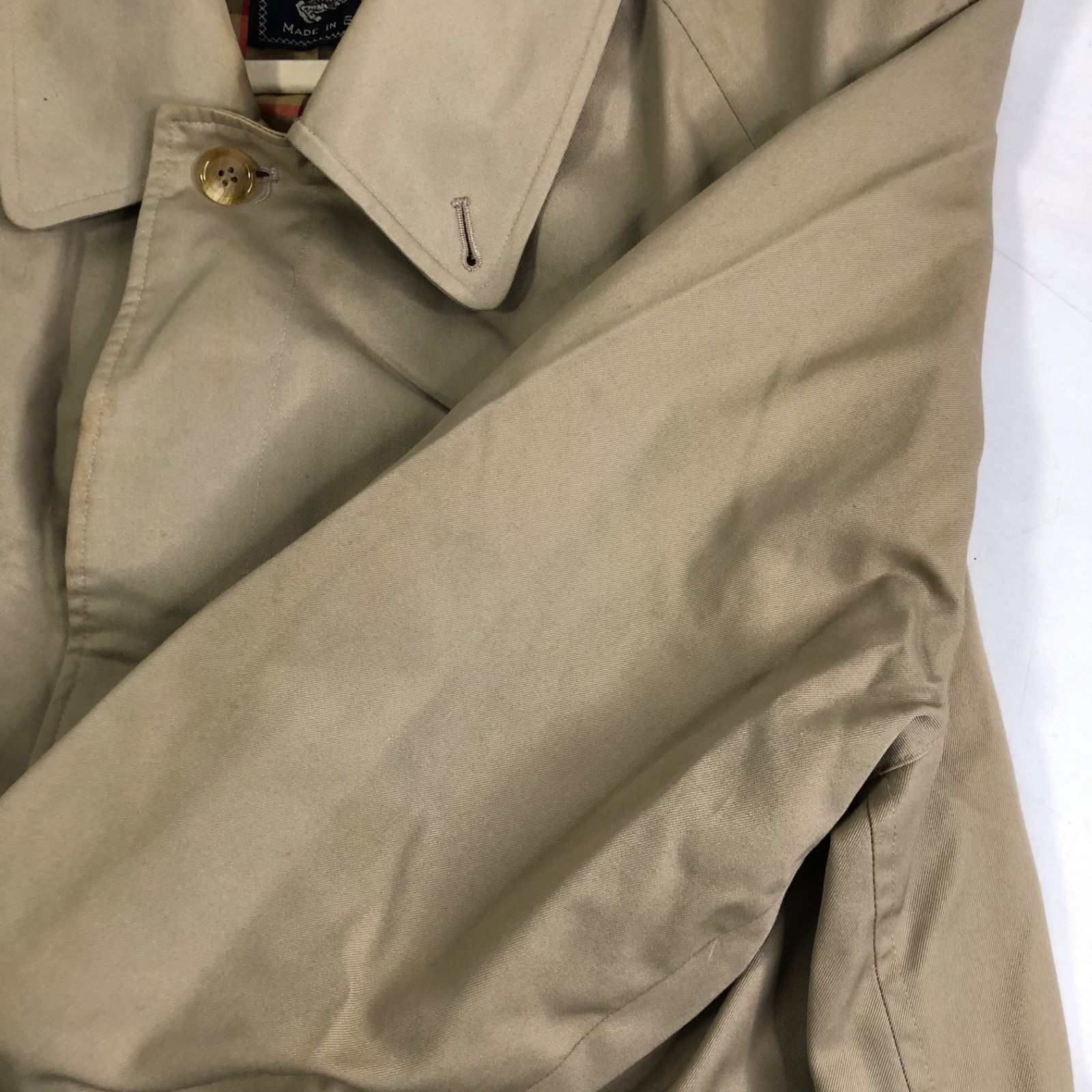 バーバリー BURBERRY コート ステンカラーコート 裏ノバチェック コットン M-L ライトベージュ 英国製