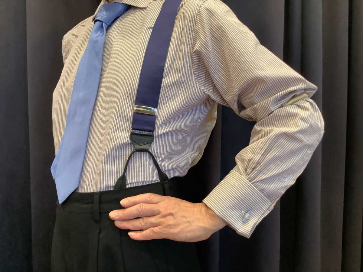 サスペンダー 英国製アルバートサーストンバラシャネイビー 上級非伸縮クラシックボタン留BARNY B100の検索結果