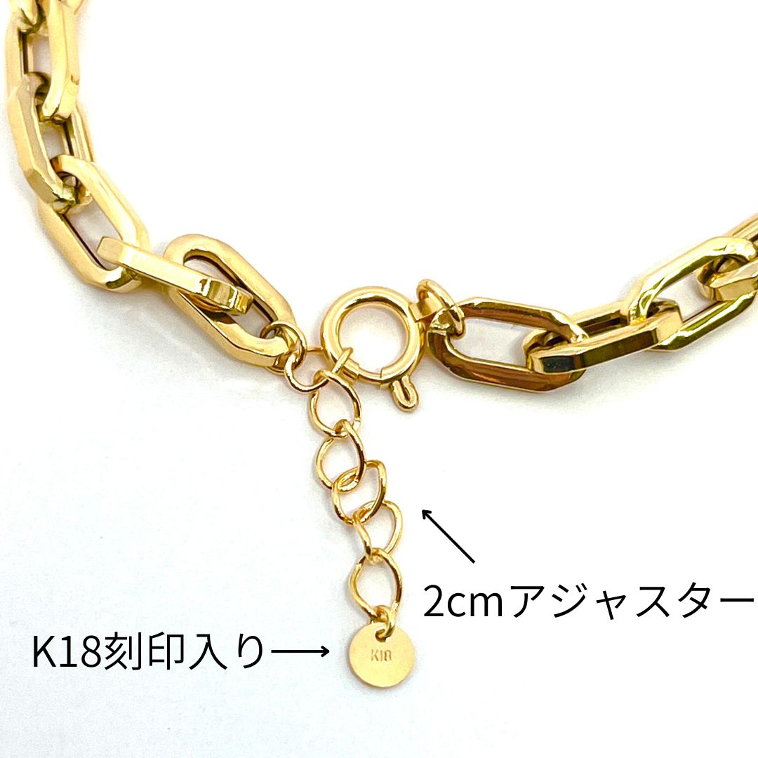 18金 ペーパークリップ ブレスレット チェーン 幅5.2mm 20cm 18cm+2cmアジャスター K18 YG 角アズキ 中空 リンク メンズ RMジュエリー MEDICALDB_JP