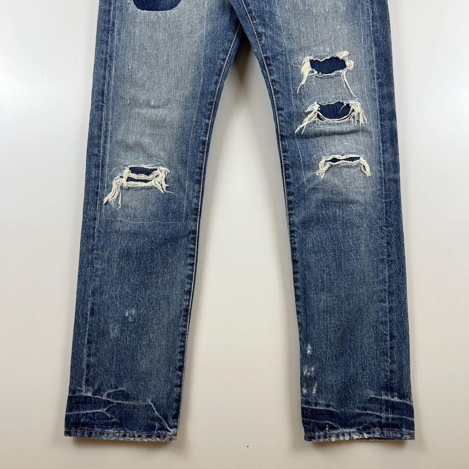DENIM - SUPPLY RALPH LAUREN crush damaged denim pants slim w30 デニム&サプライ ラルフローレン ダメージ加工 スリム デニムパンツ アメカジ レプリカ MEDICALDB_JP