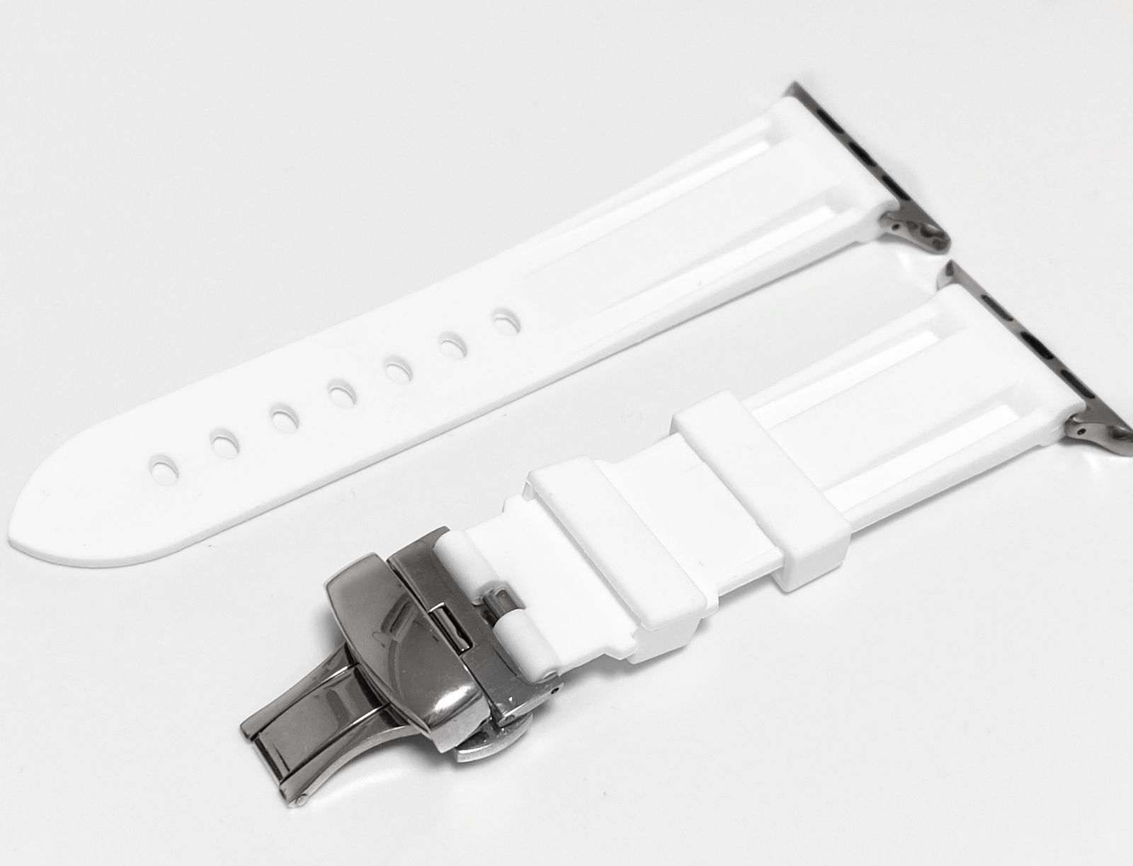 44mm用 クリア-シルバー アップルウォッチバンド ラバーベルト カバー Apple Watch クリア ケース 4 5 6 7 8 9 se スポーツ メンズ レディース