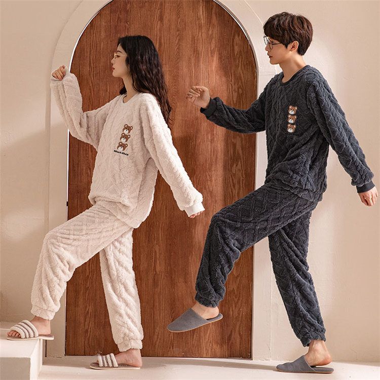 2着セット ペアパジャマ 冬 クマ柄 もこもこ カップル ペア ルームウェア セット 長袖 ペアパジャマ カップル 秋冬 結婚祝い プレゼント ペアルック カップル パジャマ 冬 恋人 夫婦お揃い 結婚祝い クリスマス プレゼント ギフト MEDICALDB_JP