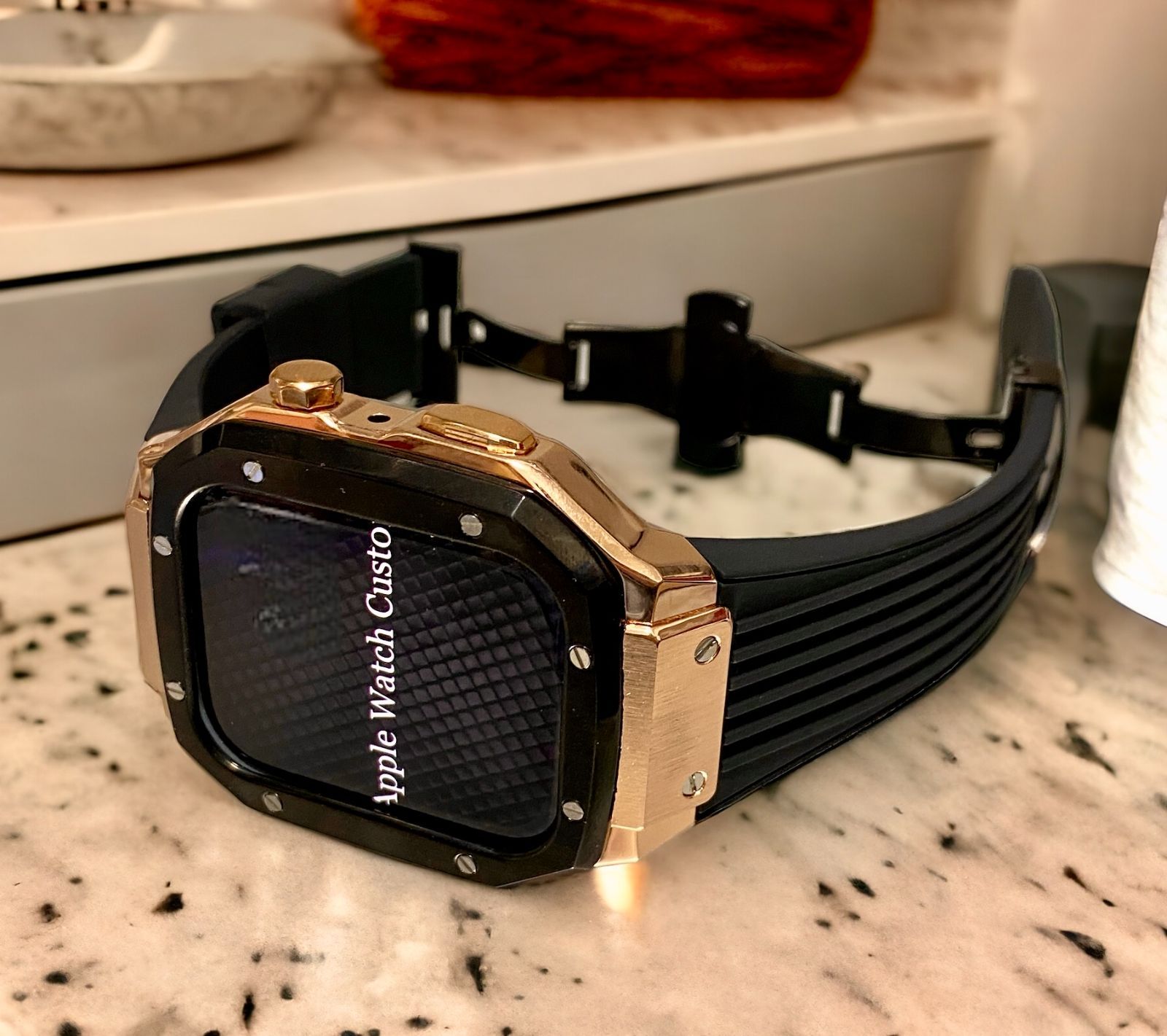 ブラックローズ アップルウォッチバンド ラバーベルト ステンレス カバー Apple Watch ケース 44mm 45mm 4 5 6 7 8 9 se メンズ レディース スポーツ Dバックルブラックモデル MEDICALDB_JP