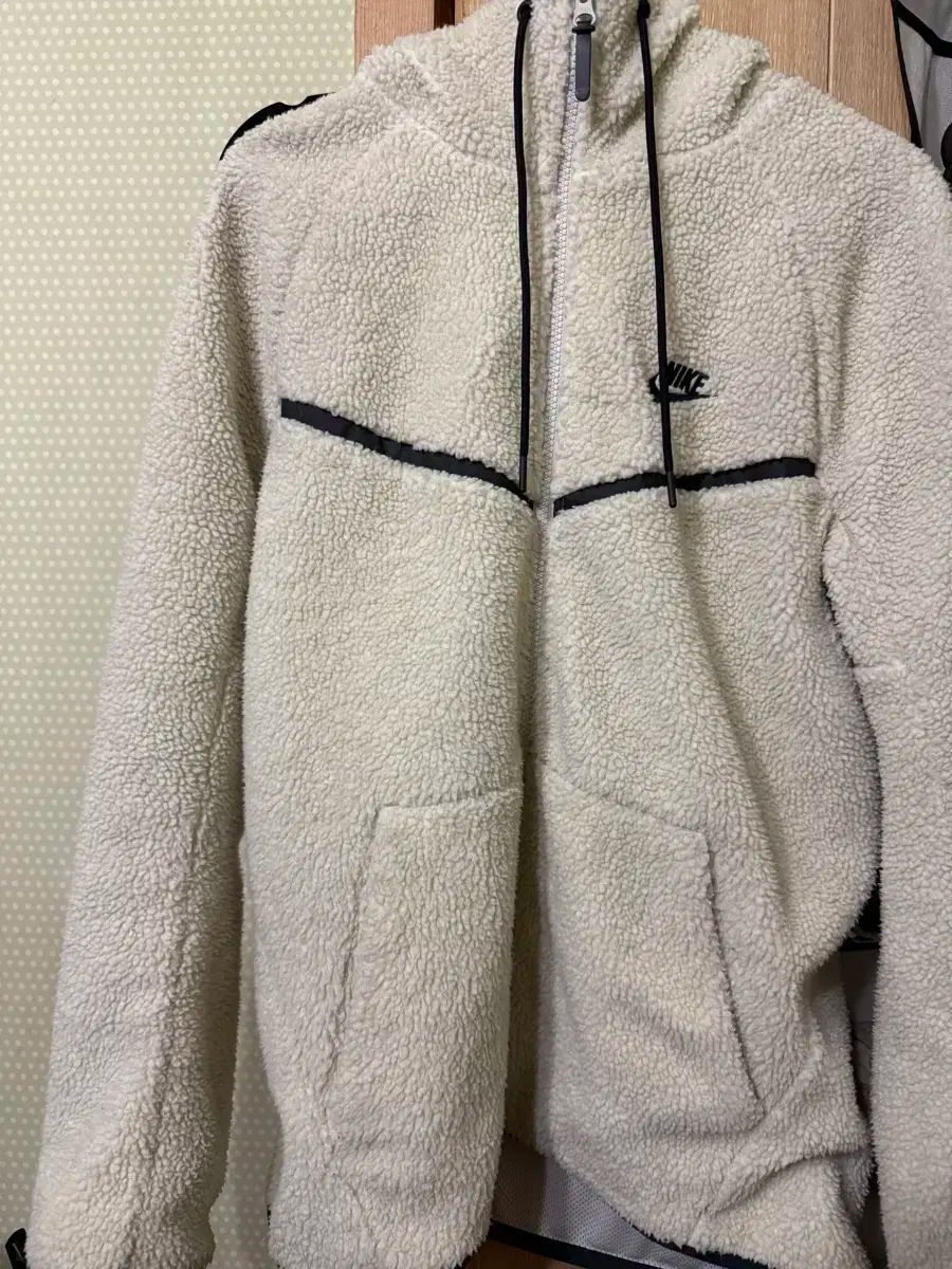 これはアイボリーカラーのナイキウィンドランナージャンパーです。ポグル生地は暖かく、フードが付いているのでとても用途が広いです!!これは製造中止モデルなので、おすすめです。