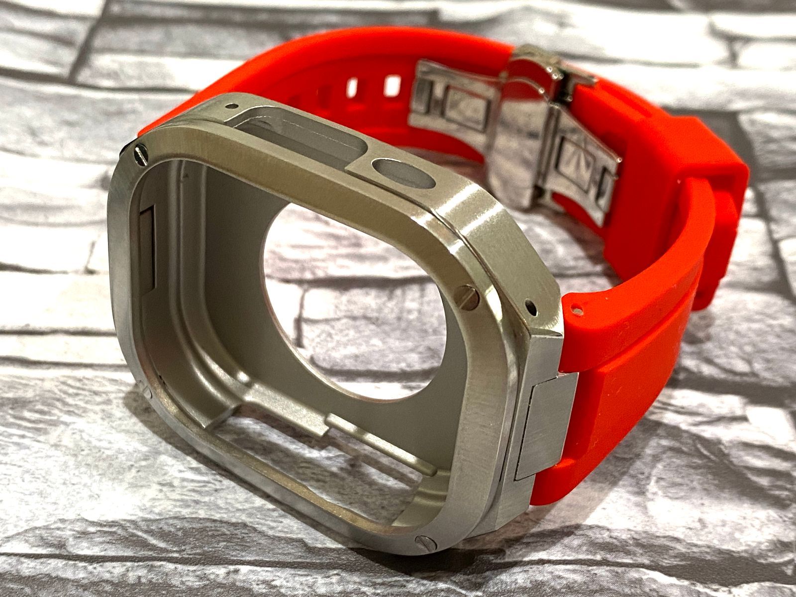 オレンジ×シルバーゴールド 49mm apple watch ultraアップルウォッチラバーメタルカバーセット ウルトラ 49ミリ用 カスタム ultra2