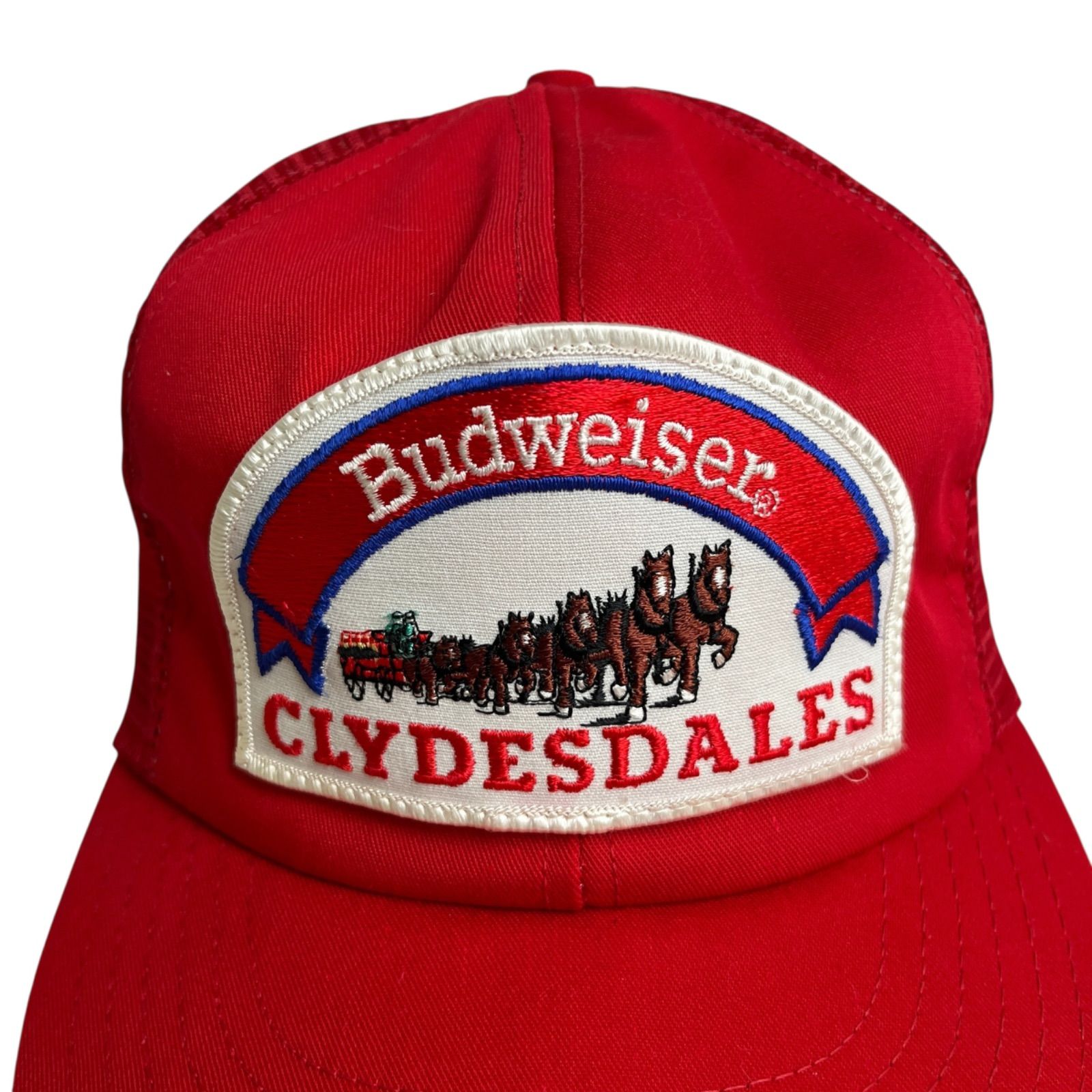 キャップ|帽子 80-90s アメリカ製 Budweiser バドワイザー CLYDESDALES メッシュキャップ ビンテージキャップ ワッペン レッド 赤 MEDICALDB_JP