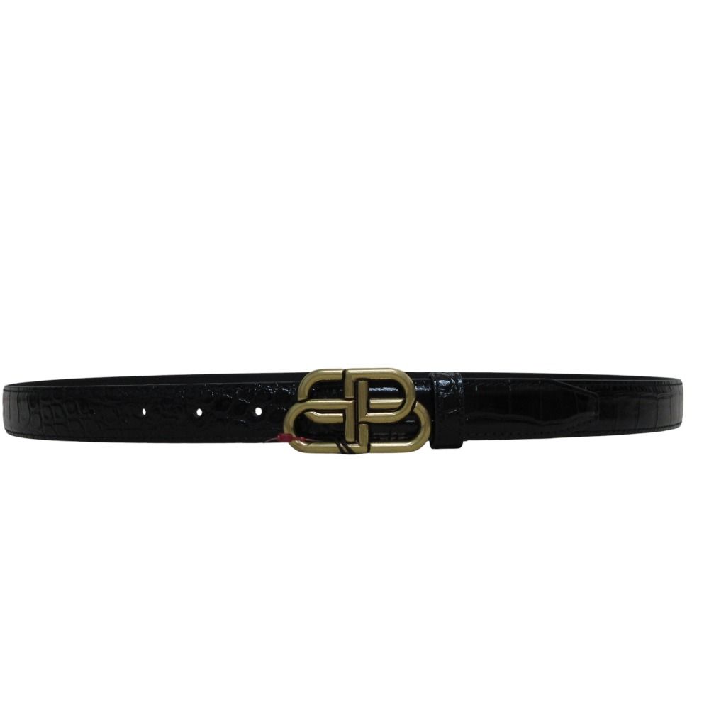 ♥ BALENCIAGA バレンシアガ BB THIN BELT クロコ型押し BBロゴバックル レザーベルト サイズ100cm 581690 ブラック メンズ 古着 MEDICALDB_JP