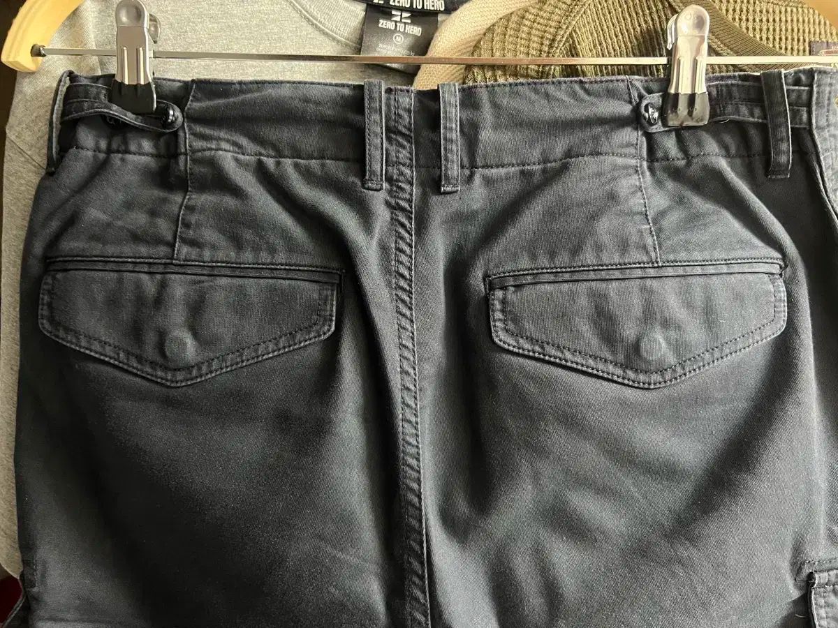 これらはポッタリーガーメントウォッシュカーゴパンツです。今年の春に購入以降、写真のように1cmの長さをお直ししましたが、自分のスタイルに合わなかったので手に入れることができず、販売しています。