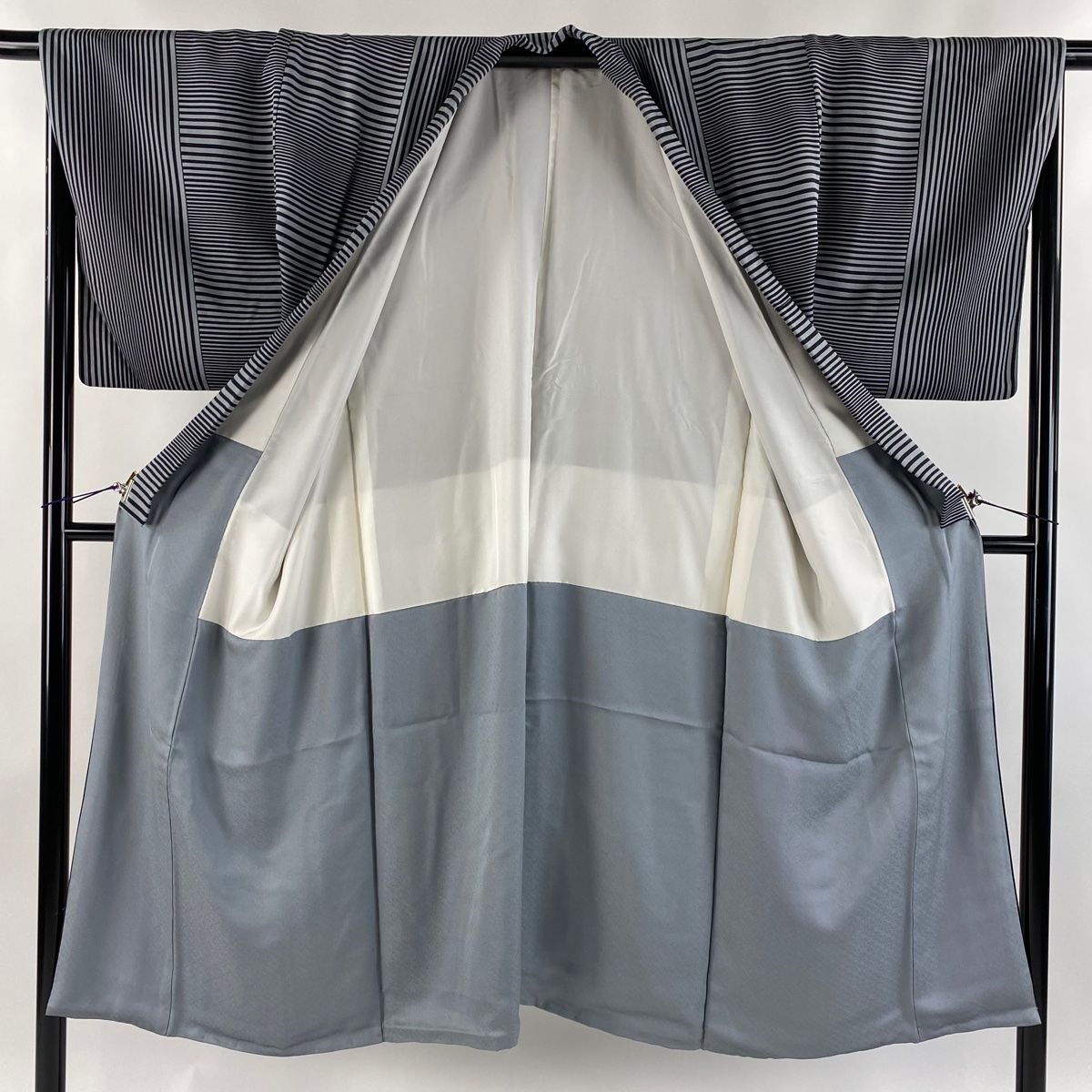 男着物 身丈137cm 裄丈68cm S 袷 斉藤三才 小紋 落款 縞 灰色 正絹 名品の検索結果