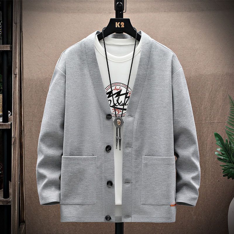 ワッフル 即 OK カーディガン Vネック ポケット付き 無地 春 秋 トップス 長袖 体型カバー メンズ アウター ジャケット 羽織り スウェット カットソー ゆったり レイヤード シンプル hjfs340 MEDICALDB_JP