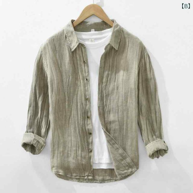 2XL メンズ ファッション 服 男性用 オシャレ シンプル 大人 かっこいい 大きいサイズ ストリート 紳士服 夏 リネン 長袖 シャツ レトロ コットンリネン トップス 服 ウォッシュ 加工 薄手 カジュアル シャツ ジャケット MEDICALDB_JP