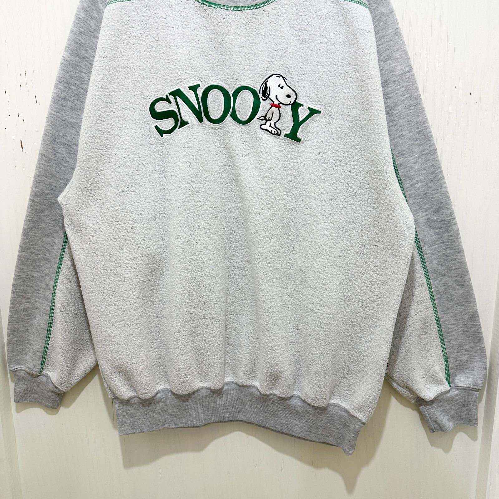 90s SNOOPY スヌーピー 刺繍スウェット ヴィンテージ オーバーサイズ ビッグシルエット ゆるダボ キャラクタースウェット XL グレー 灰色 古着 ユーズド MEDICALDB_JP