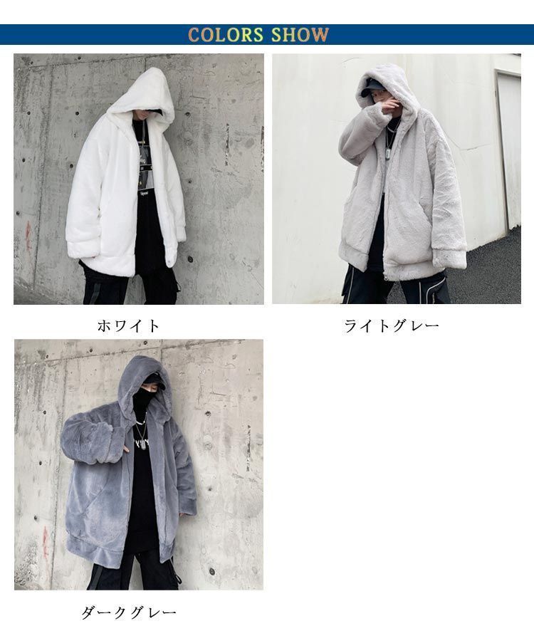 フード付き 厚手 フェイクファー 暖かい 男性 コート メンズ 長袖 秋冬物 ジャケット モコモコ アウター 軽量 無地 体型カバー 軽量 通勤 ファー ふわふわ おしゃれ ゆったり 毛皮コート カジ shark594924 MEDICALDB_JP