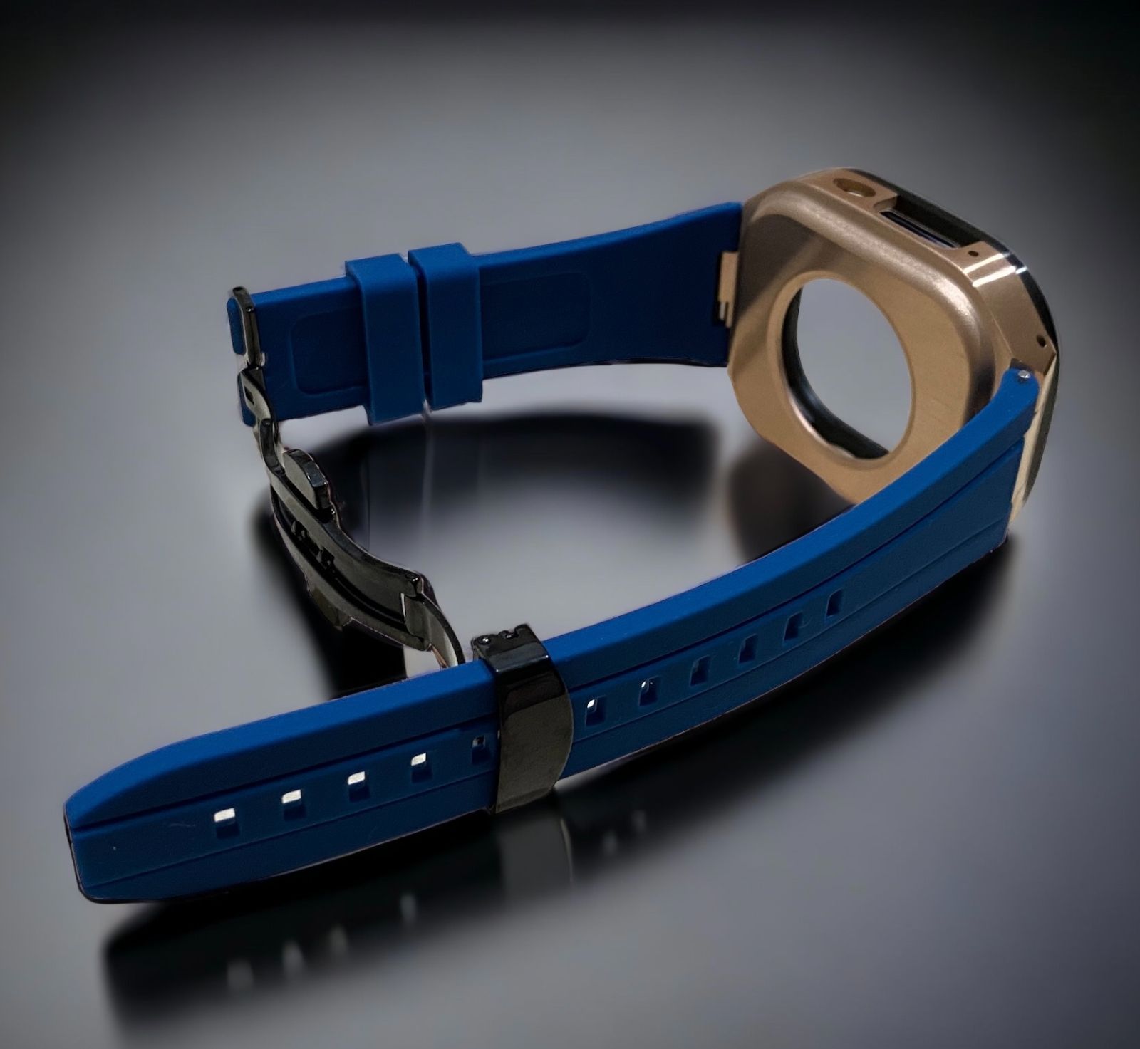 ネイビー×ローズブラック 49mm apple watch ultraアップルウォッチラバーメタルカバーセット ウルトラ 49ミリ用 カスタム ultra2 MEDICALDB_JP