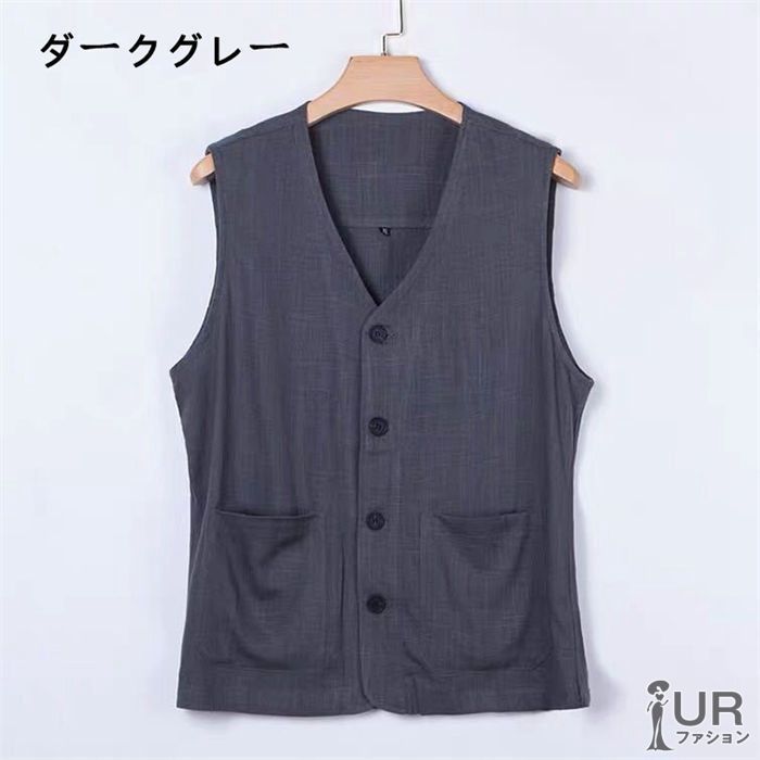 涼しい メンズ 綿麻ベスト ベスト メンズベスト ポケット カジュアルベスト リネンベスト 秋服 夏服 春服 リネン 細身 トップス 無地 メンズファッション スリム 20代 30代 40代 50代 60代 yaokun02 DZ10 MEDICALDB_JP