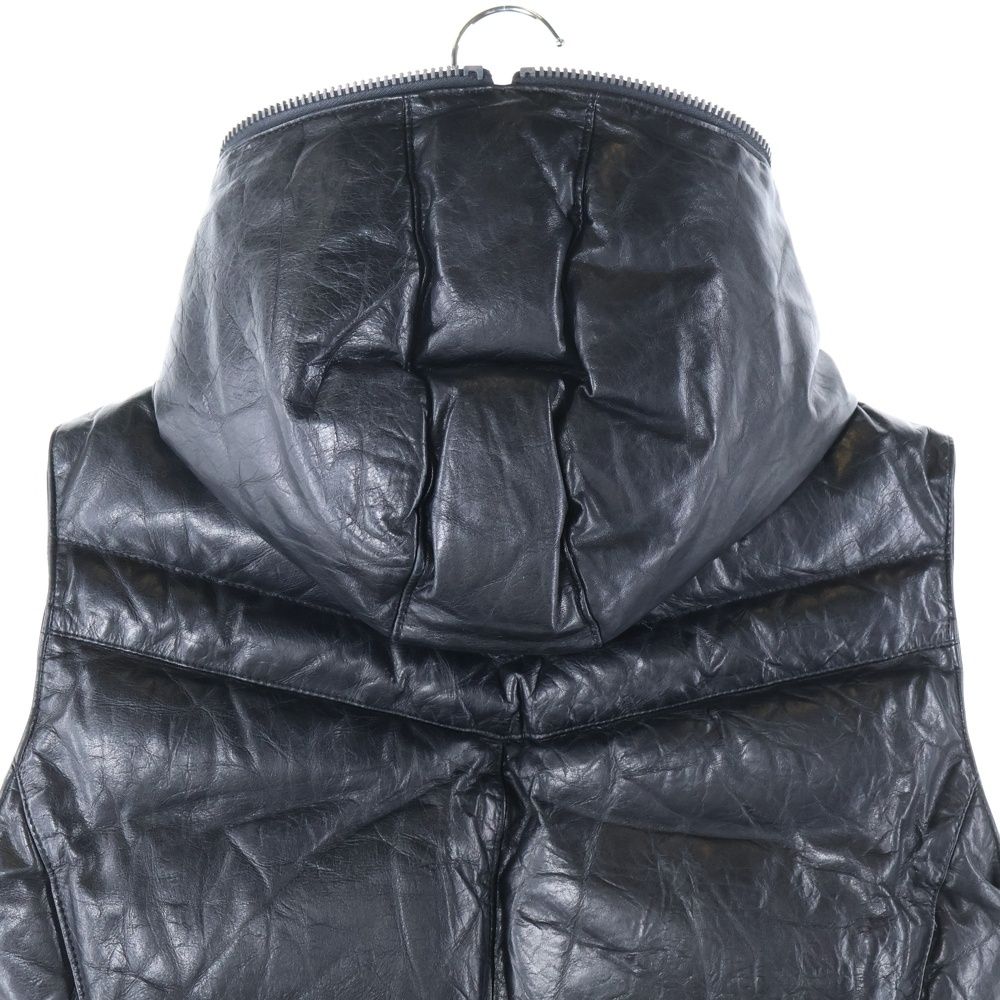 ISAMU KATAYAMA BACKLASH イサムカタヤマバックラッシュ カウレザー 牛革 ジップアップ フードダウンジャケット ブラック MEDICALDB_JP