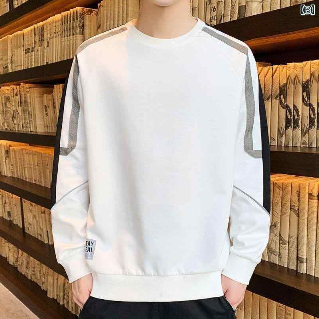 3XL メンズ ファッション 服 オシャレ シンプル 大人 かっこいい 大きいサイズ ストリート 紳士服 白 スウェット シャツ 韓国 スタイル 秋冬 シャツ ラウンドネック 長袖 T MEDICALDB_JP