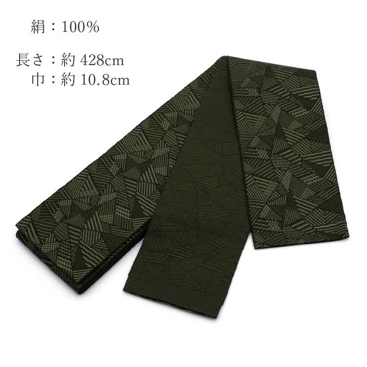 角帯 正絹 博多織 男性用 本場筑前 井上絹織物 緑 グリーン 幾何学模様 連続模様 着物 男物 浴衣 きもの ゆかた 和服 男帯 絹 otokoobi-00004 MEDICALDB_JP