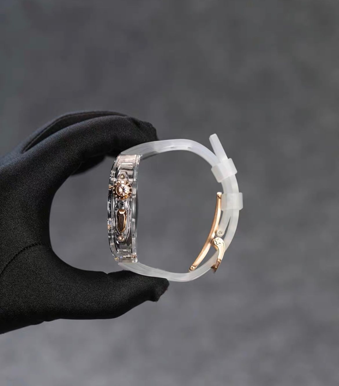 45mm用 クリア-ローズゴールド アップルウォッチバンド ラバーベルト カバー Apple Watch クリア ケース 4 5 6 7 8 9 se スポーツ メンズ レディース