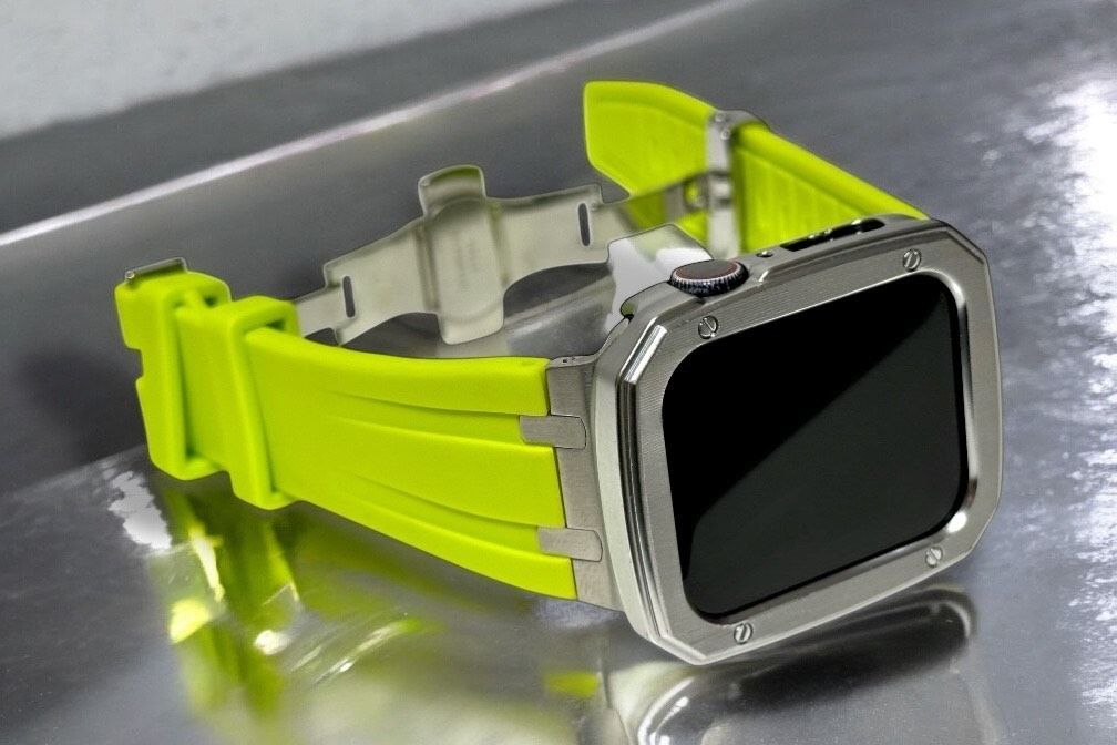 ライムグリーンシルバー アップルウォッチバンド ラバーベルト Apple Watch保護カバー 艶消しケース メンズ レディース 44mm45mm49mm ウルトラ ultra ultra2 se MEDICALDB_JP