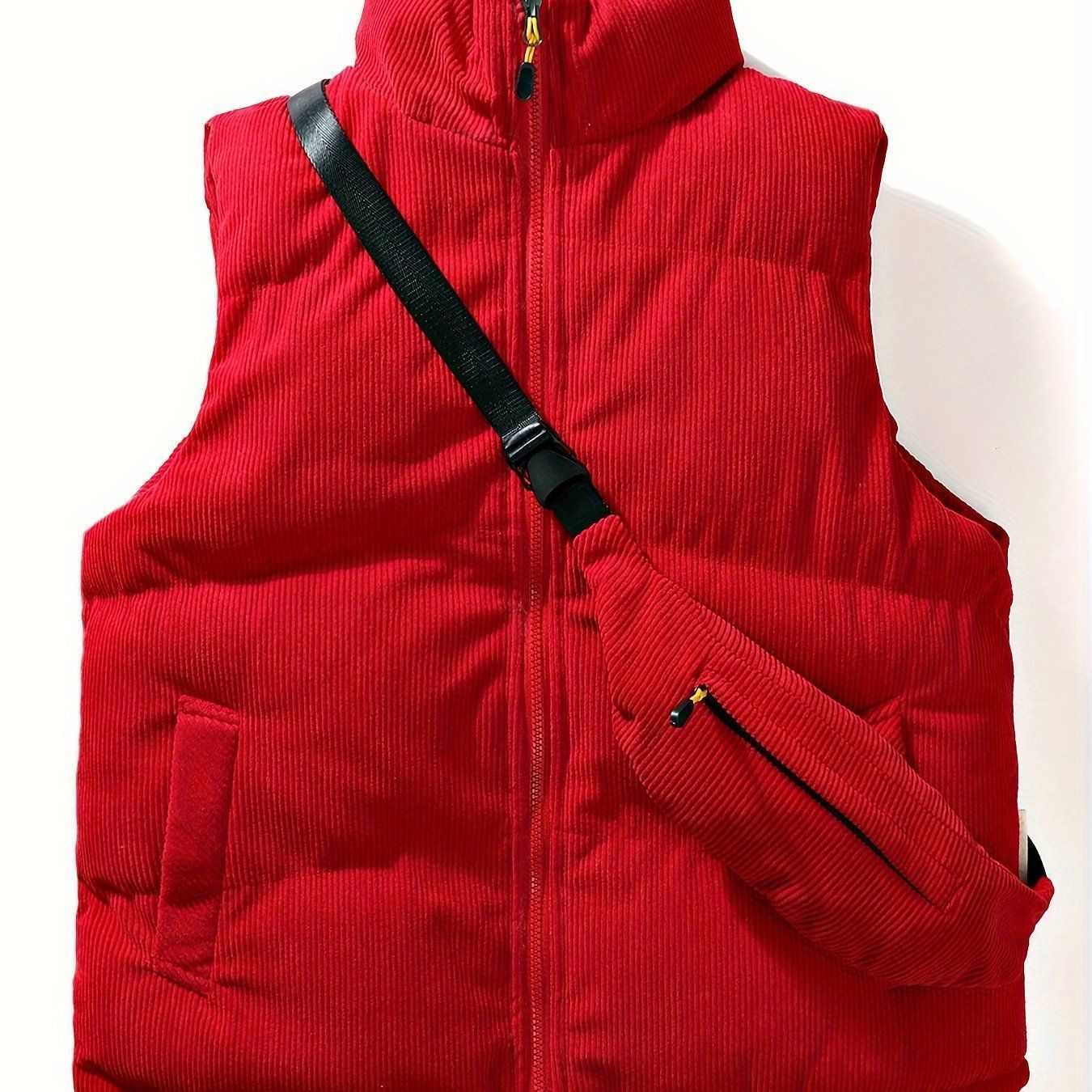 ベスト ダウンベスト ポケット付き 40代 メンズ 大きいサイズ ソリッドストライプ コーデュロイ ノースリーブジャケット アウトドア アクティビティ用 小型クロスボディバッグ付き カジュアル ジップアップベスト クロスボディバッグ 赤 レッド MEDICALDB_JP