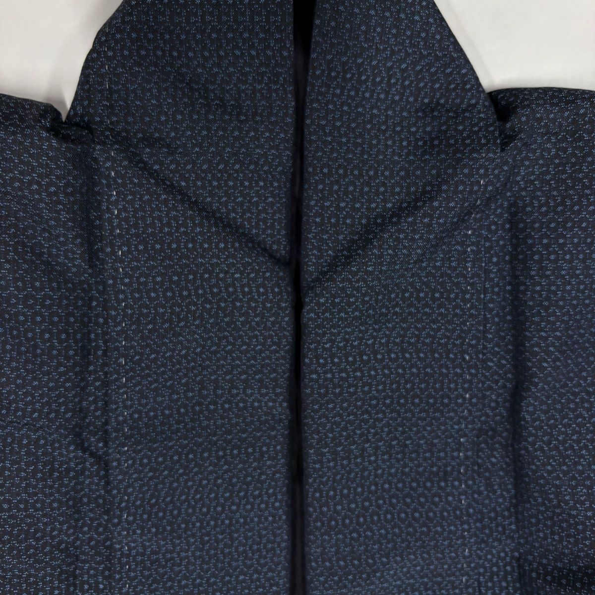 男着物 身丈152cm 裄丈72.5cm L 袷 アンサンブル 紬 幾何学 紺色 正絹 名品の検索結果