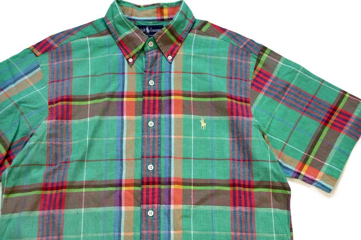 90s ラルフローレン マドラスチェック ボタンダウン 半袖 コットンシャツ L B オールド ビンテージ 手織り ロゴ刺繍 ワンポイントの検索結果