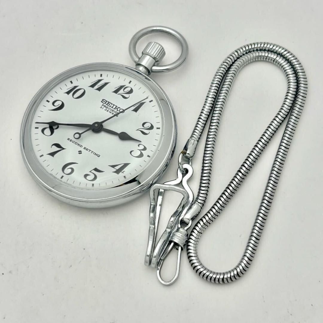 品 SEIKOセイコー PRECISIONプレジション 21 JEWELS 懐中時計 SECOND SETTING 手巻き シルバー 白文字盤 時計 現状品