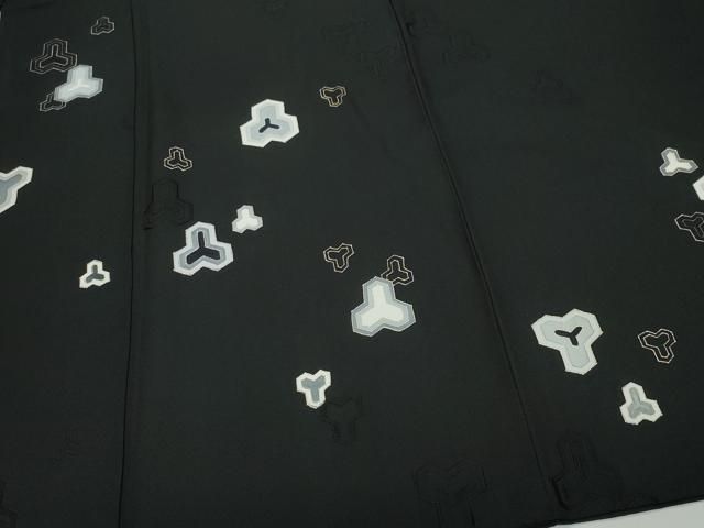 平和屋着物●男性 小紋 地紋起こし 片身替わり 毘沙門亀甲 白色×黒色 金彩 正絹 CAAY2896vf MEDICALDB_JP