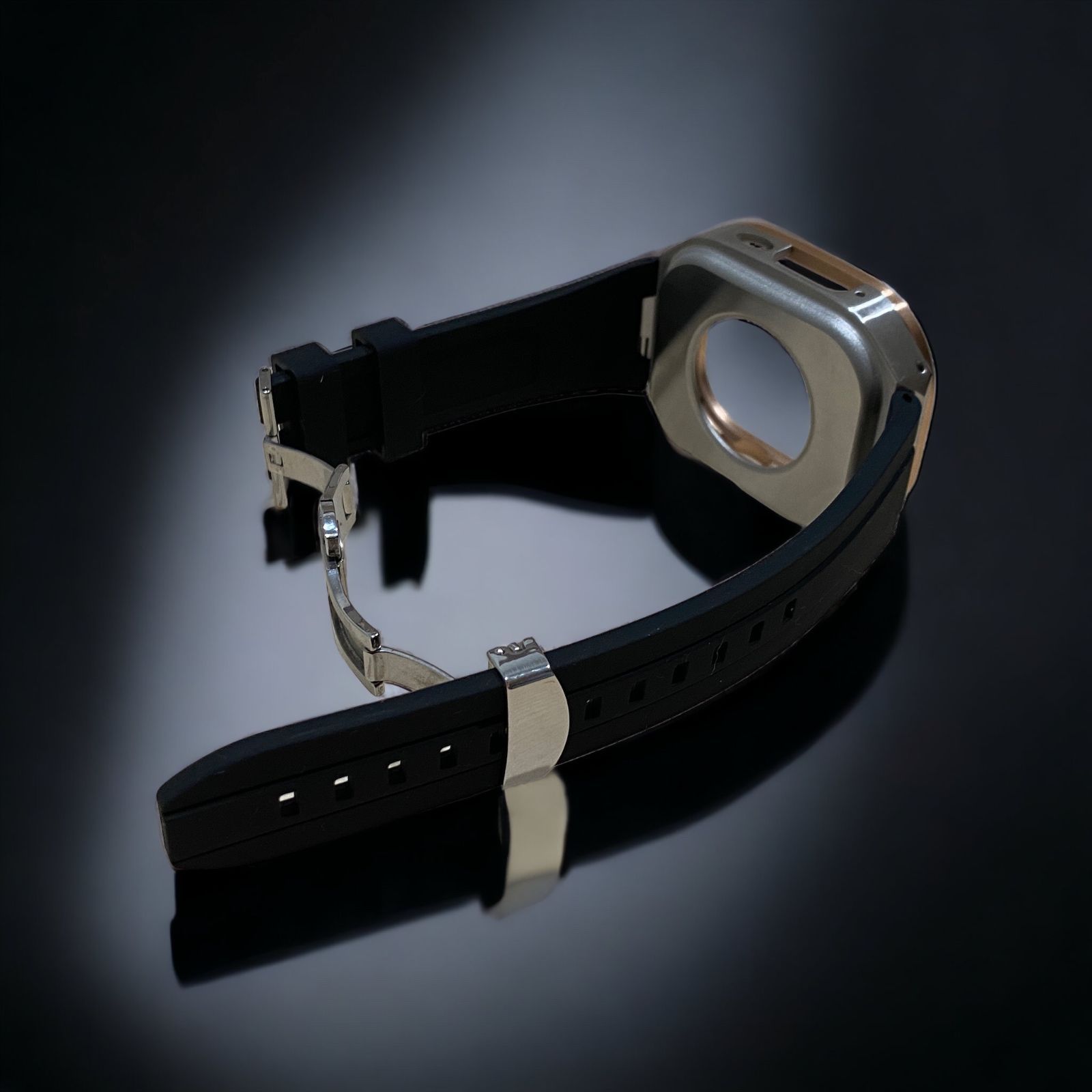 ブラック×ローズゴールドシルバー 49mm apple watch ultraアップルウォッチラバーメタルカバーセット ウルトラ 49ミリ用 カスタム ultra2 MEDICALDB_JP
