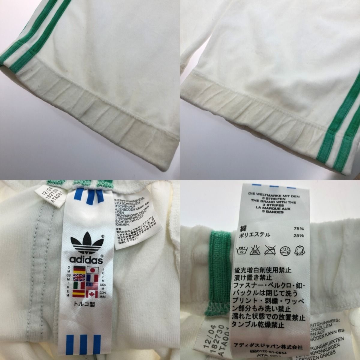 □□adidas Originals アディダスオリジナルス トレフォイルロゴ ベロア セットアップ SIZE O ATA001 ホワイト×グリーン MEDICALDB_JP