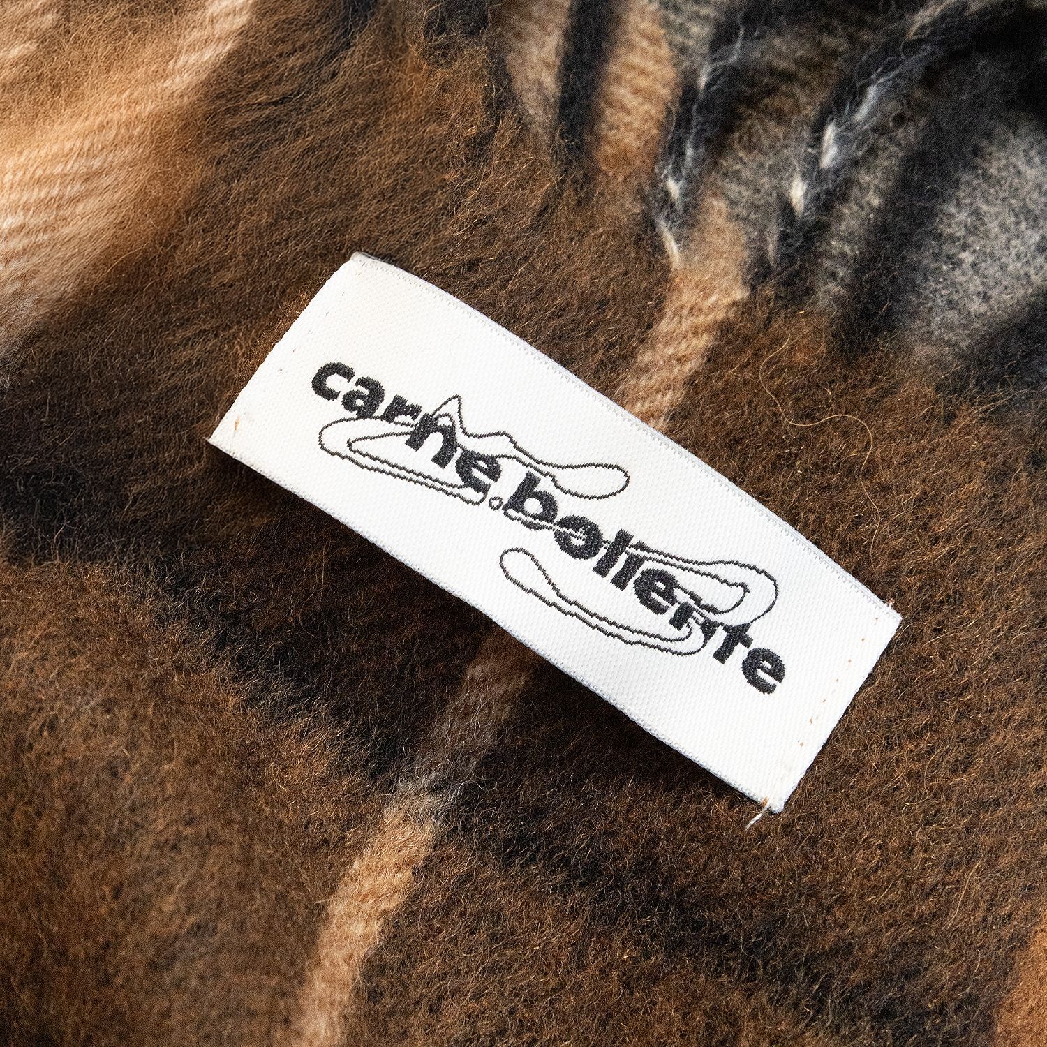 CARNE BOLLENTE | THE RABBIT WRAP-UP TARTAN ロングマフラー ストール スカーフ ロゴ グラフィック タータンチェック ブラウン MEDICALDB_JP