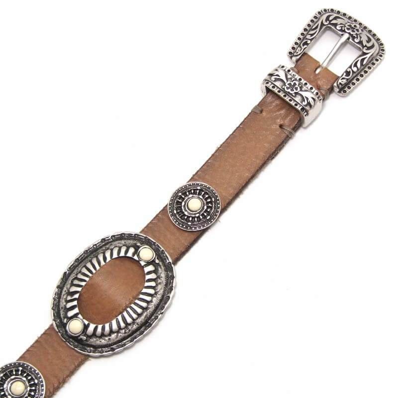 Puntovita プントヴィータ コンチョベルト イタリア製 5穴 13コンチョ レザー メンズ レディース ブラウン 85 28010900 MEDICALDB_JP