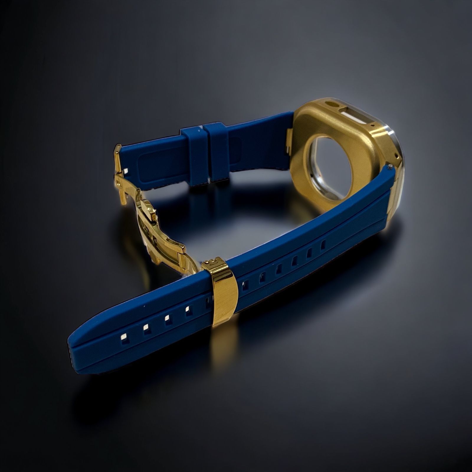 ネイビー×シルバーゴールド 49mm apple watch ultraアップルウォッチラバーメタルカバーセット ウルトラ 49ミリ用 カスタム ultra2 MEDICALDB_JP