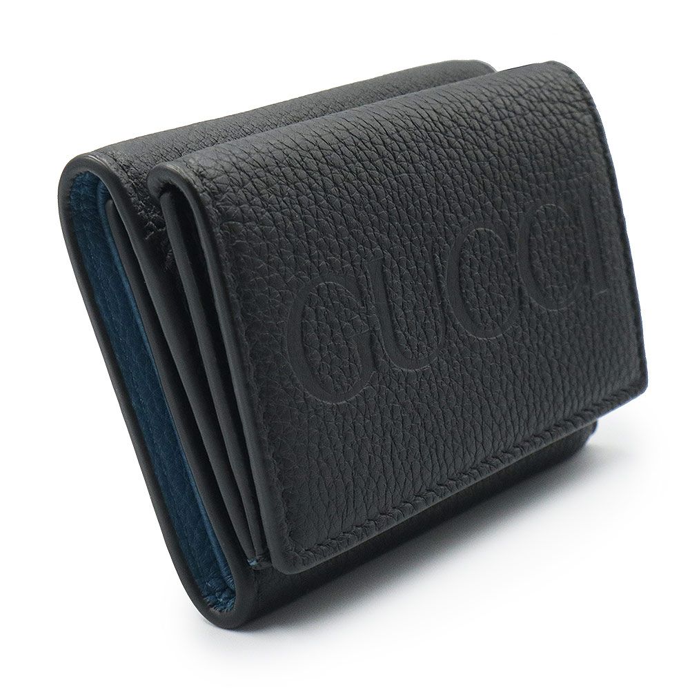 グッチ 日本 ロゴ ミニウォレット コンパクト 三つ折り財布 カーフスキン レザー ブラック ブルー シルバー金具 736151 GUCCI ♥品 MEDICALDB_JP
