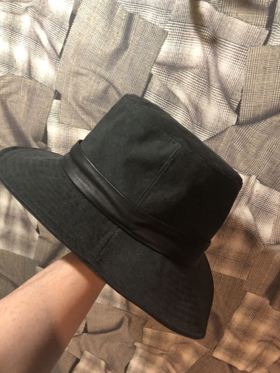 HERMES エルメス レザートリム バケットハット 帽子 サイズ57 ブラック メンズ 古着